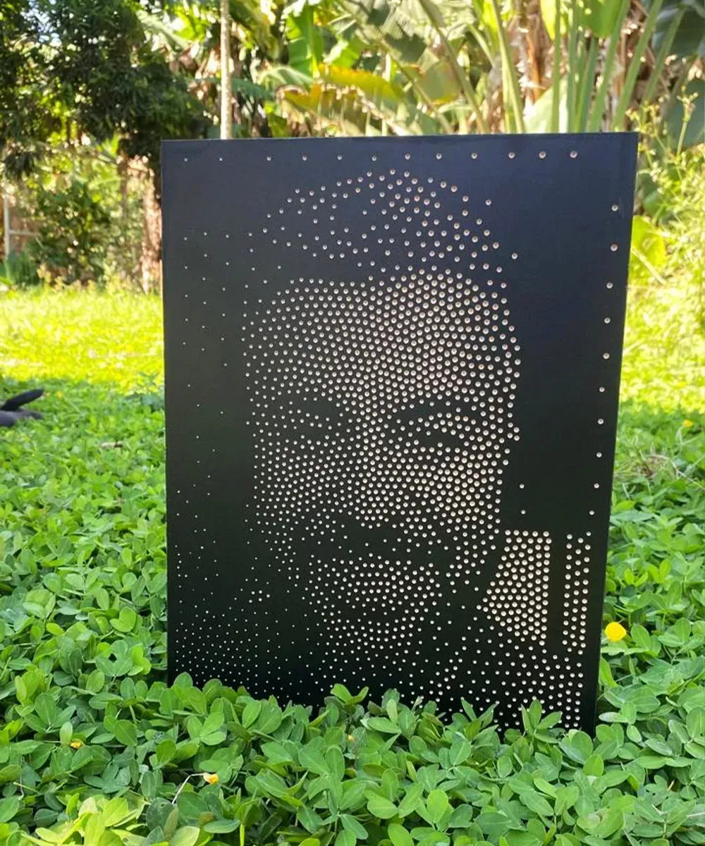 Transforme uma simples foto em uma obra minimalista, emocionante e exclusiva – feita em MDF, com furos que revelam a imagem de quem você ama.